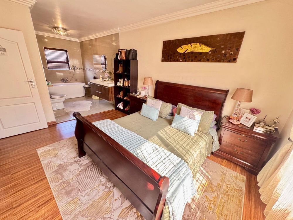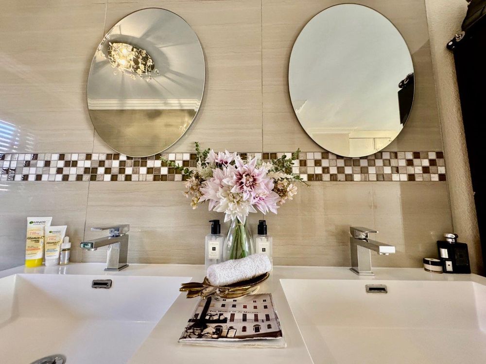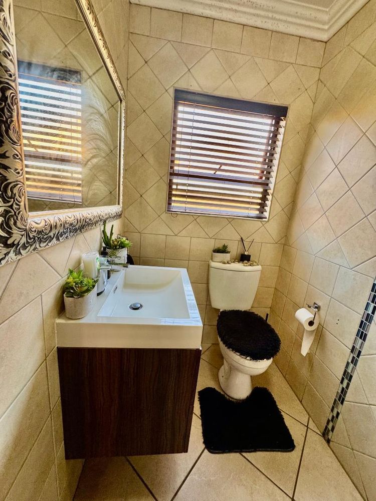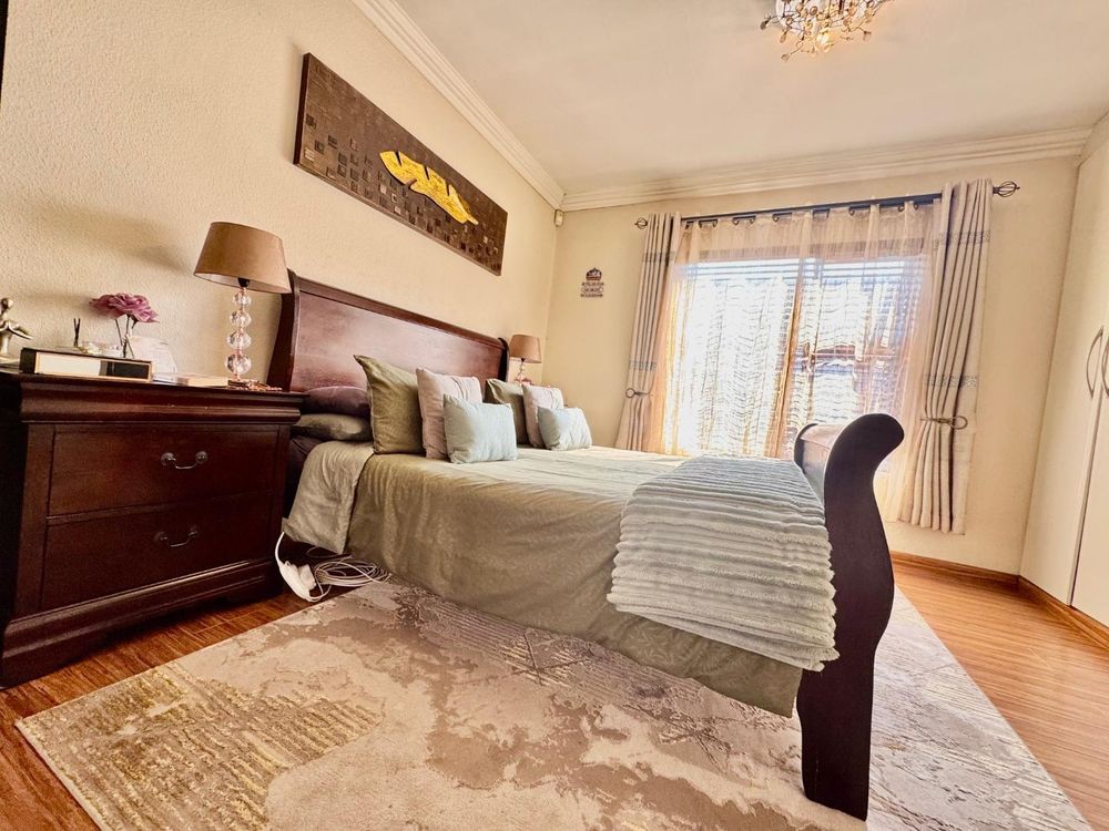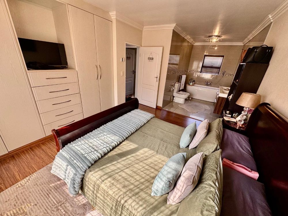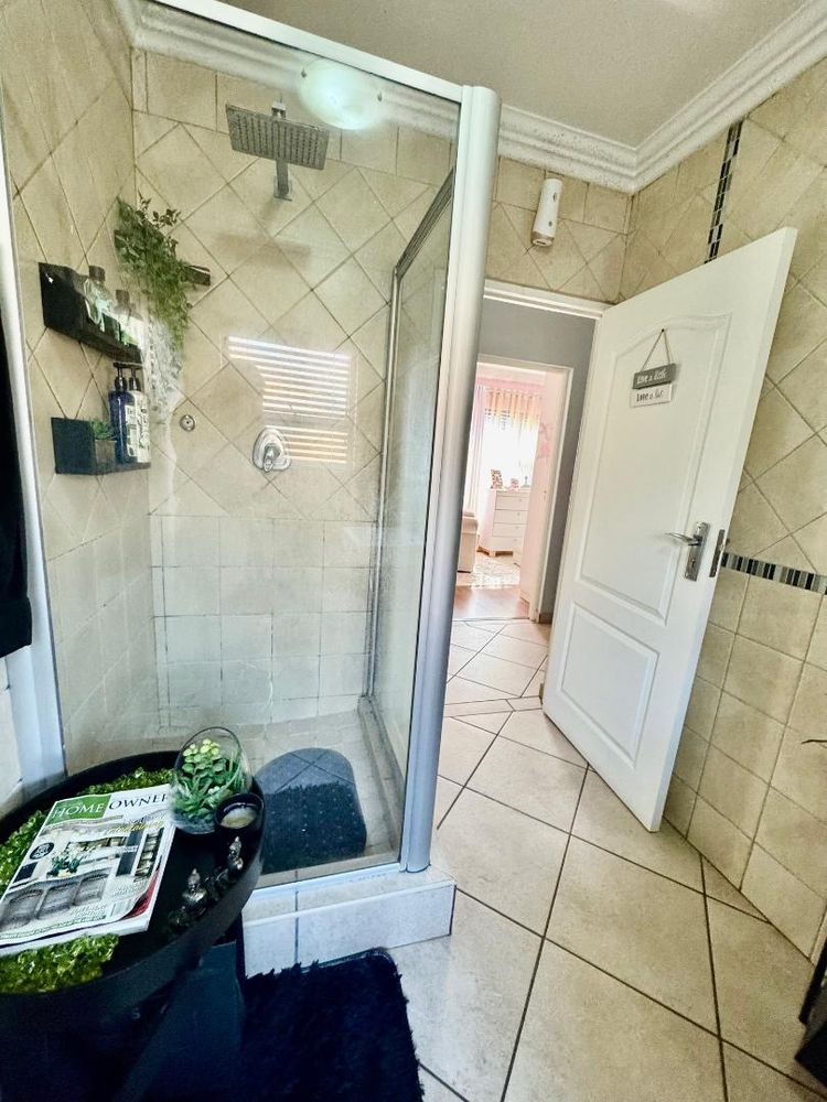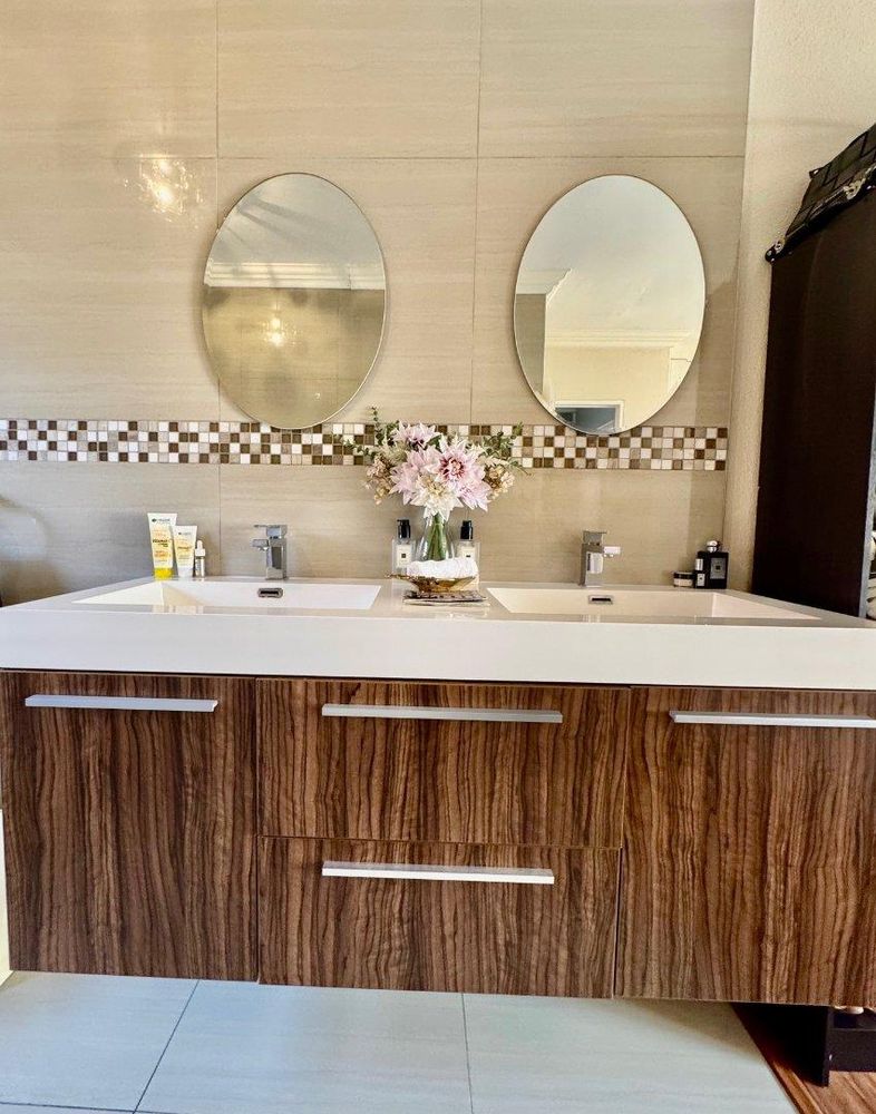 3 Spacious Bedrooms with laminated wooden flooring as well as new cupboards. The master bedroom is en-suite to a breathtaking bathroom with oval tub, double vanity and toilet. The second bathroom has shower, basin and toilet.