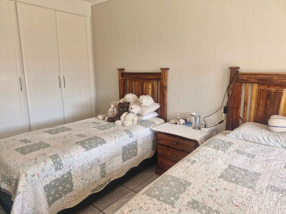 Step into a neatly tiled open-plan lounge and dining room that greets you with warmth and style. The modern kitchen with sleek granite countertops and gas stove boasts loads of cupboard and counter space. One under counter machine adds a flair of sophistication to this family home. Two spacious bedrooms featuring built in cupboards are elegantly tiled. One full bathroom. A semi enclosed patio at the front can be easily adapted into a handy laundry.