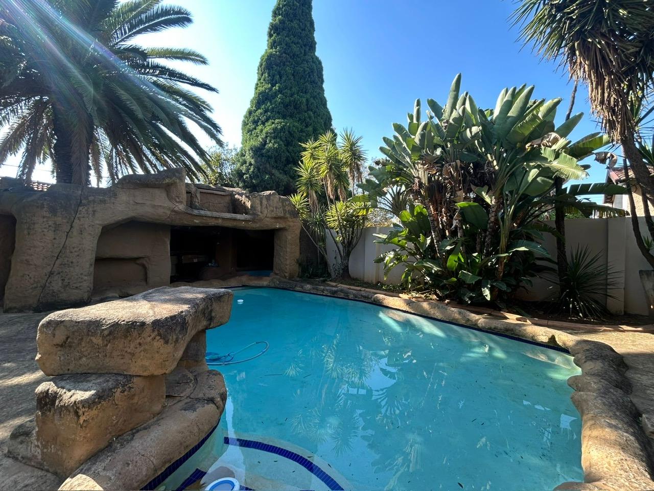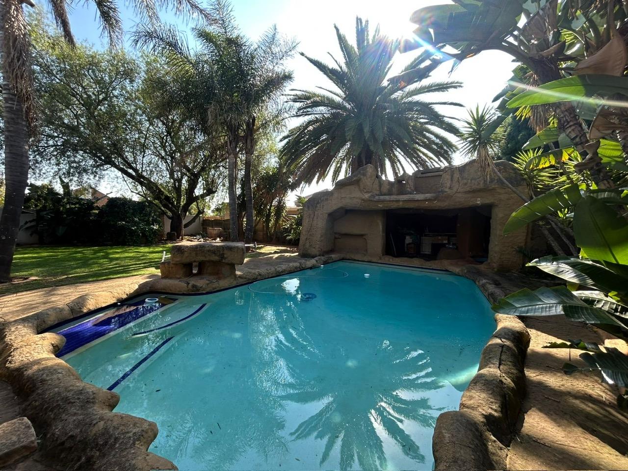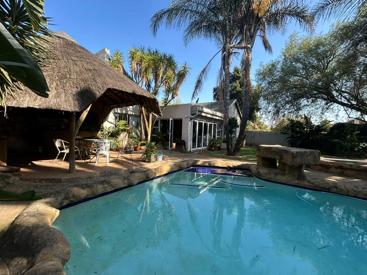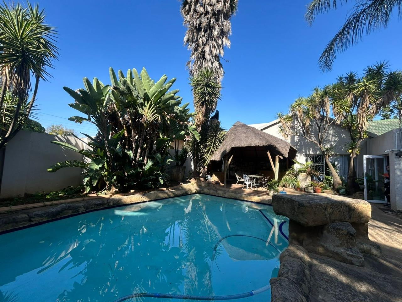 The property features a spacious garden, ideal for kids to romp around and for outdoor entertaining with friends and family. A stunning outdoor oasis, which includes a thatched Lapa and built in braai, a firepit and a beautiful pool - surrounded by tropical palm trees, set in a private garden.