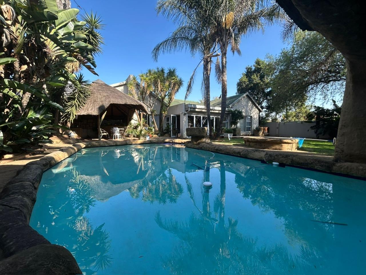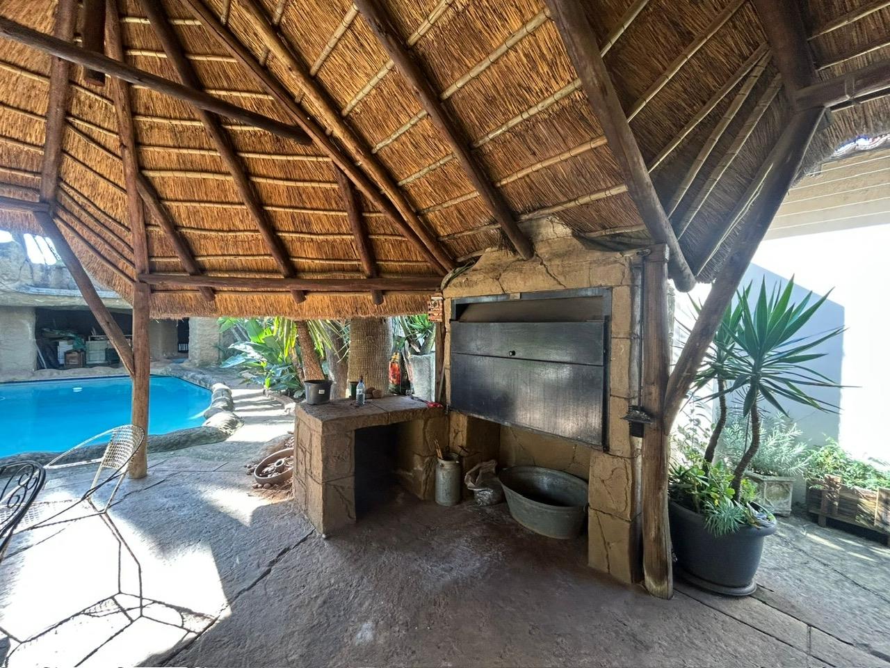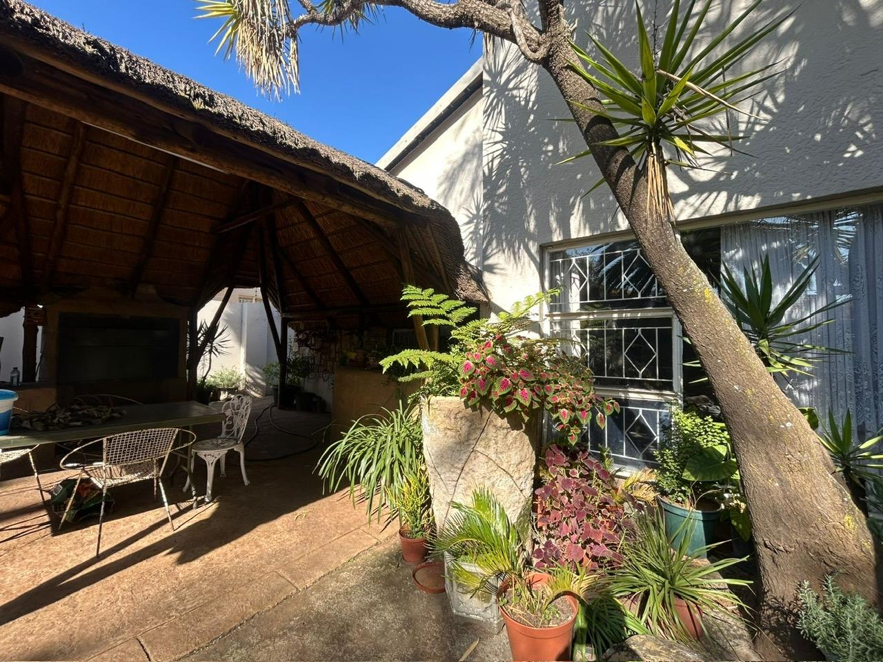 The property features a spacious garden, ideal for kids to romp around and for outdoor entertaining with friends and family. A stunning outdoor oasis, which includes a thatched Lapa and built in braai, a firepit and a beautiful pool - surrounded by tropical palm trees, set in a private garden.