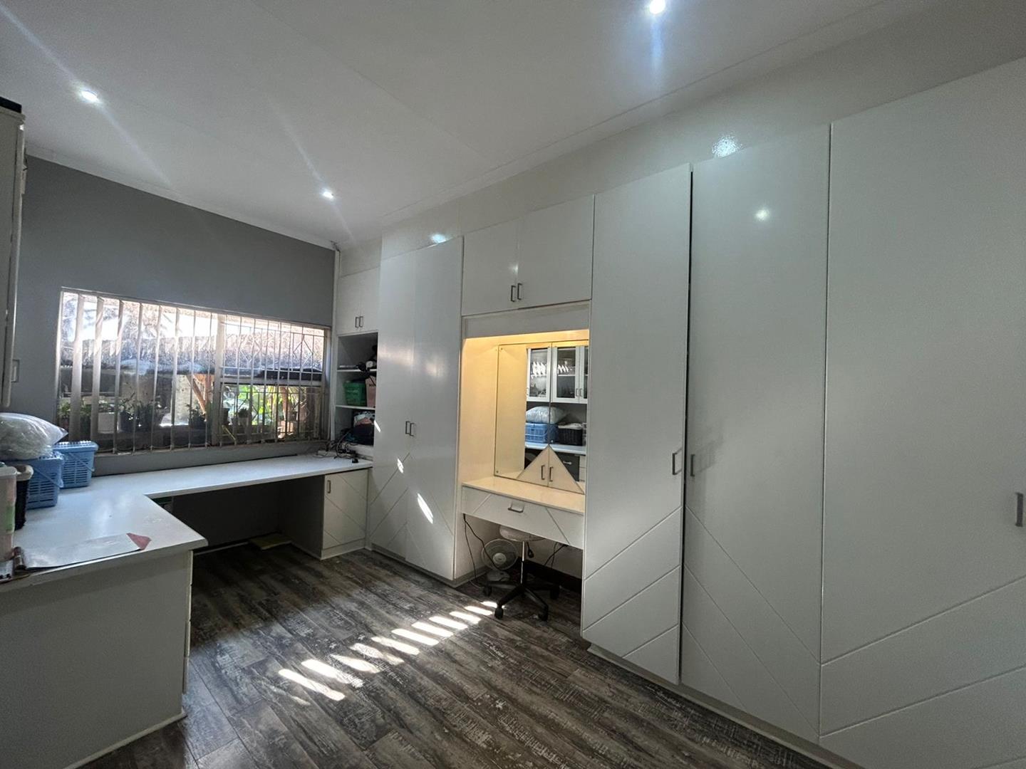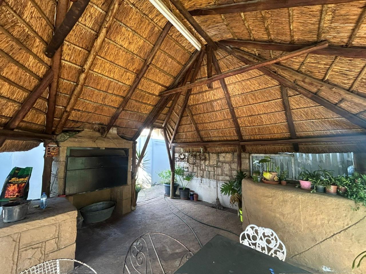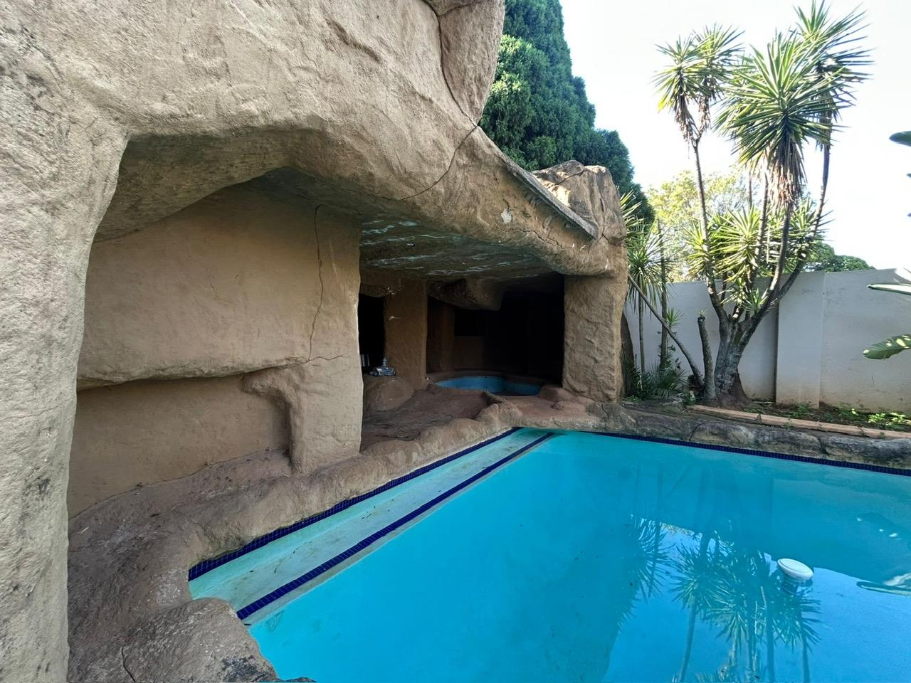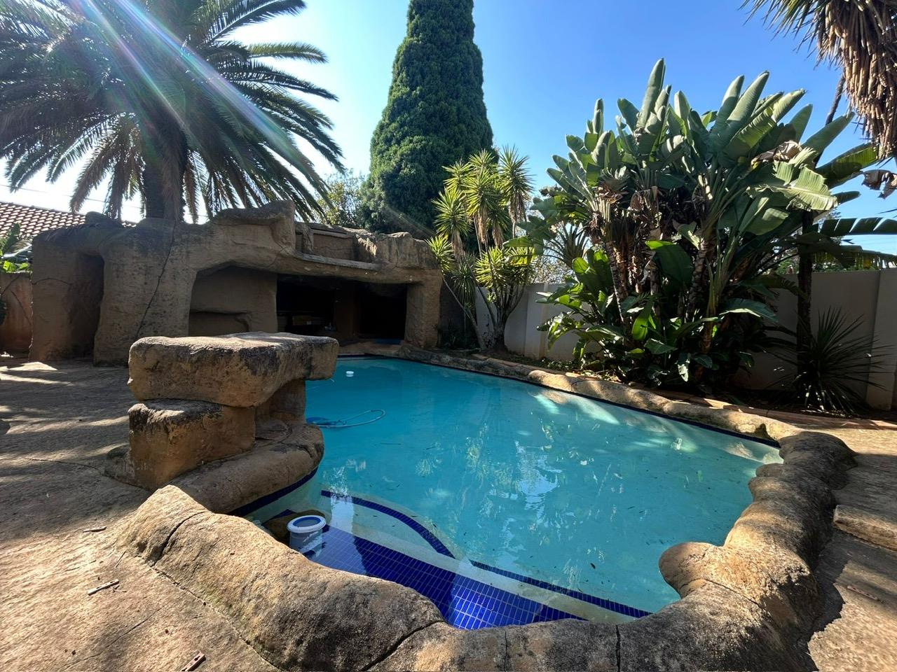 The property features a spacious garden, ideal for kids to romp around and for outdoor entertaining with friends and family. A stunning outdoor oasis, which includes a thatched Lapa and built in braai, a firepit and a beautiful pool - surrounded by tropical palm trees, set in a private garden.