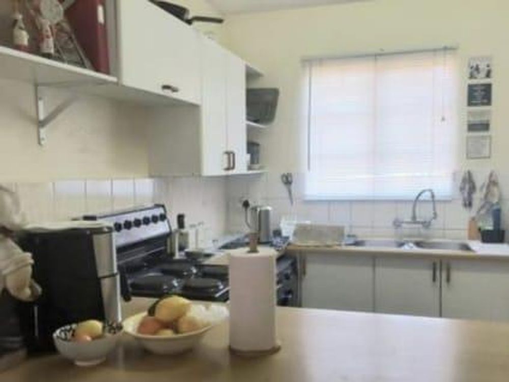 The kitchen has a breakfast counter, lots of cupboard space & space for all your appliances.