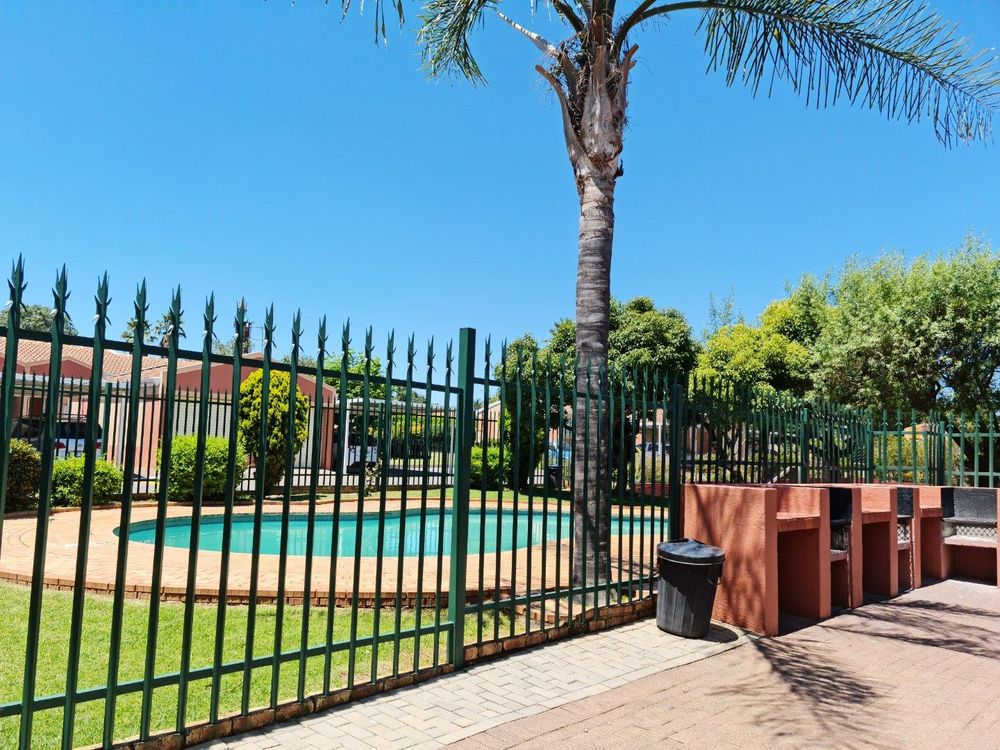 A well maintained complex that offers a gorgeous pool area, & a tennis court. The communal gardens are neat and very well looked after. 24 hour security guards at the entrance with armed response back up.