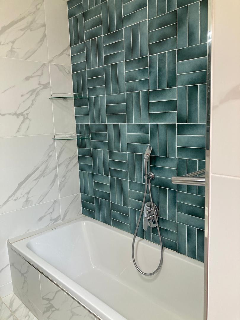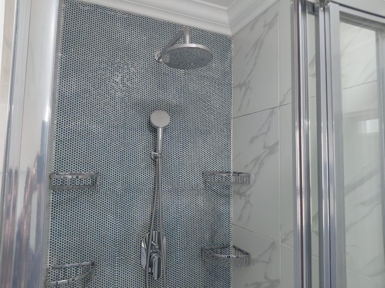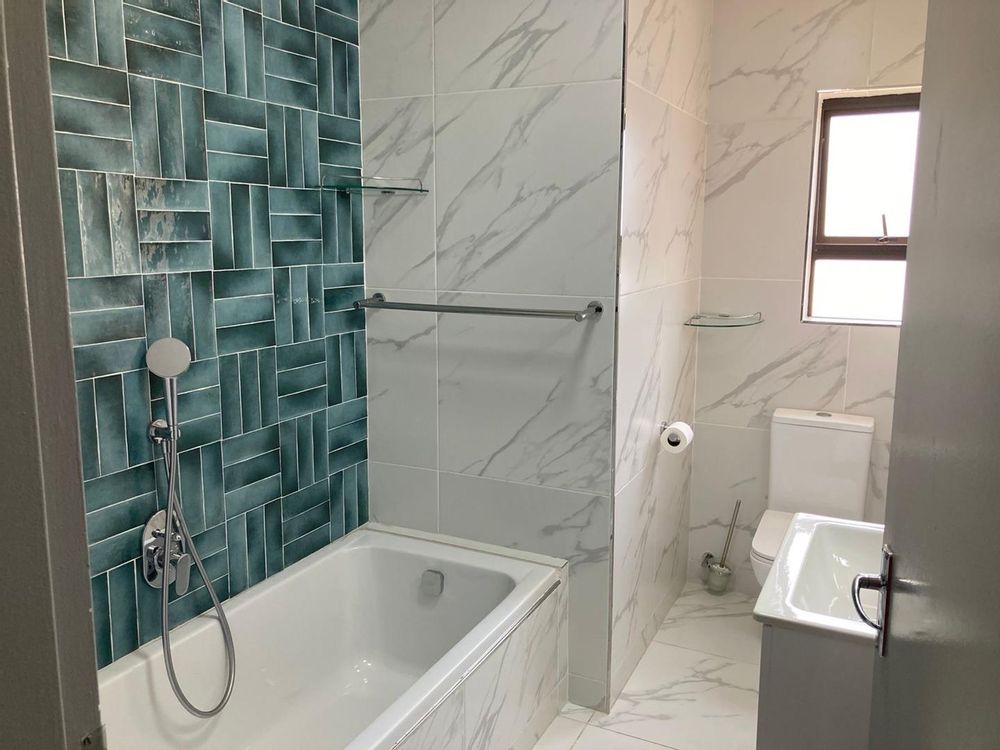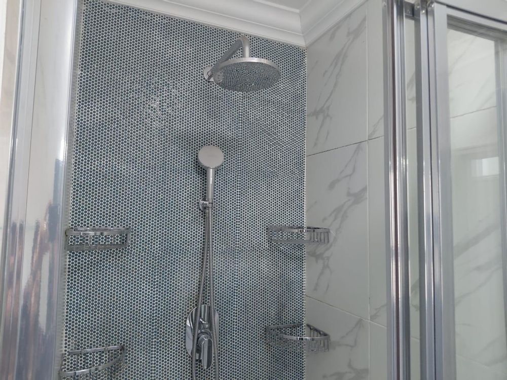 3 ample sized bedrooms that have modern sliding door cupboards and there's two luxurious & trendy bathrooms. The Master bedroom has a walk in closet and a stylish en suite bathroom with amazing tiles. The family bathroom has a 'fit for a king' (& a queen) type shower.
