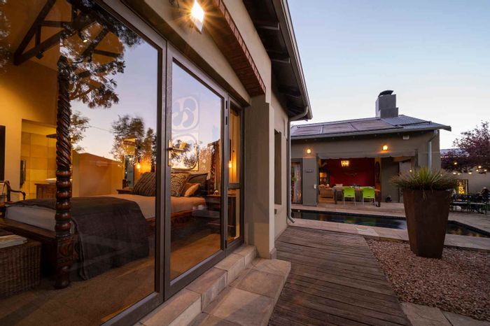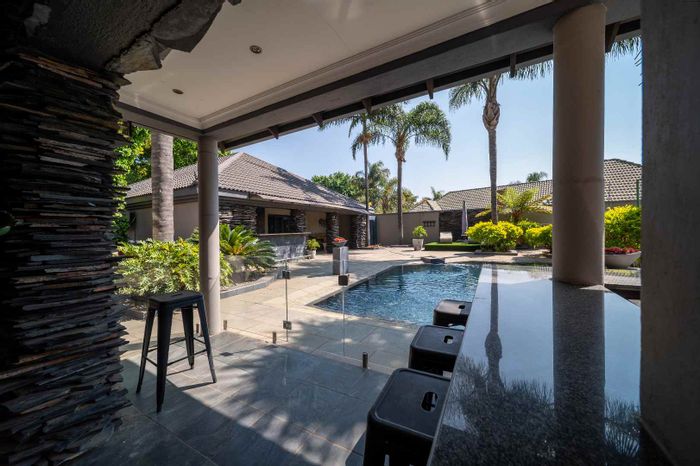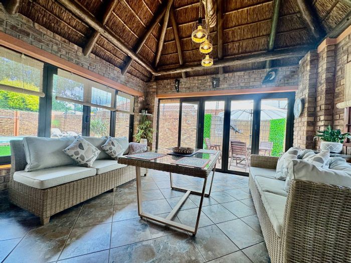 Family-friendly Rynfield home opposite Ebotse Golf Estate: renovated open-plan living with loft, Caesarstone island kitchen, pool, thatched lapa, and income-generating flatlet (R9,000/month).