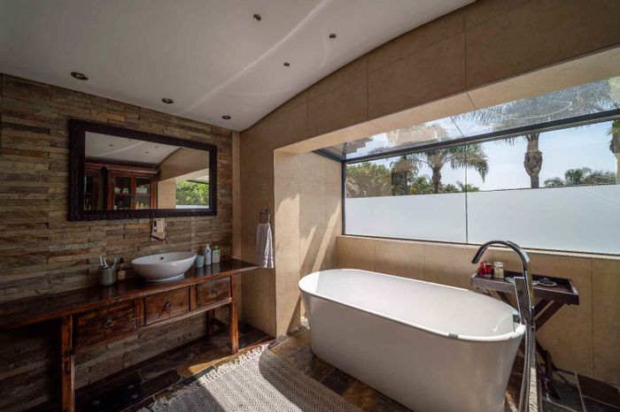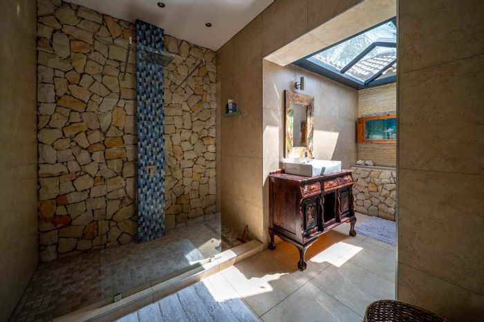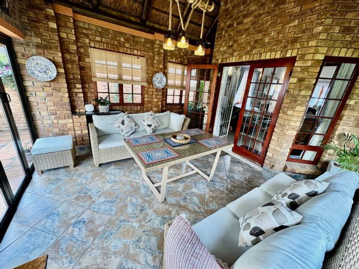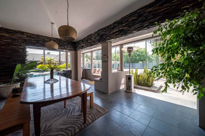 Unique Bali-African inspired home with spacious bedrooms, open-plan living, workshop, solar power, and automated systems. Ideal for entertaining.