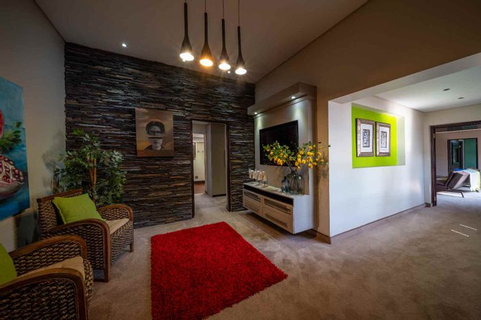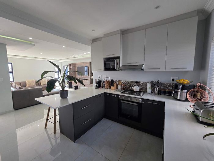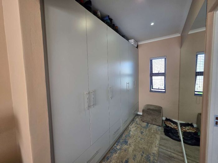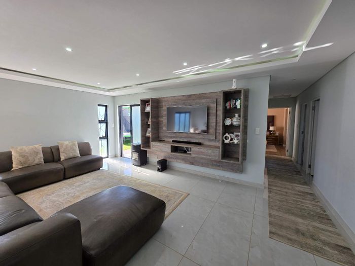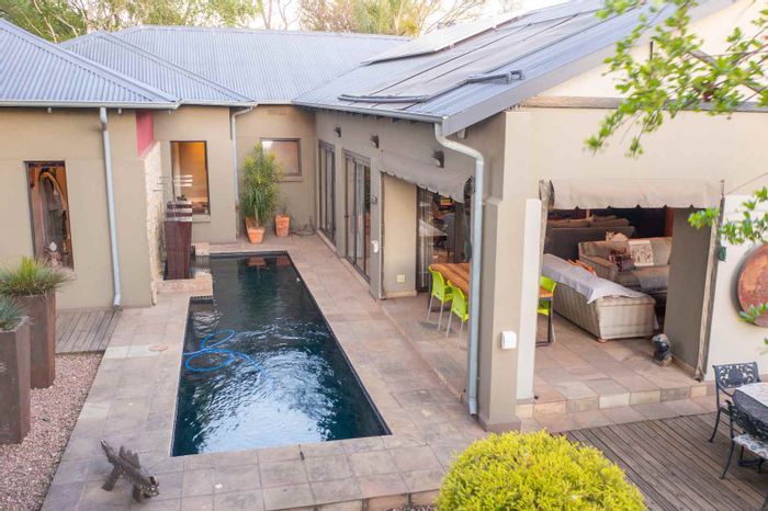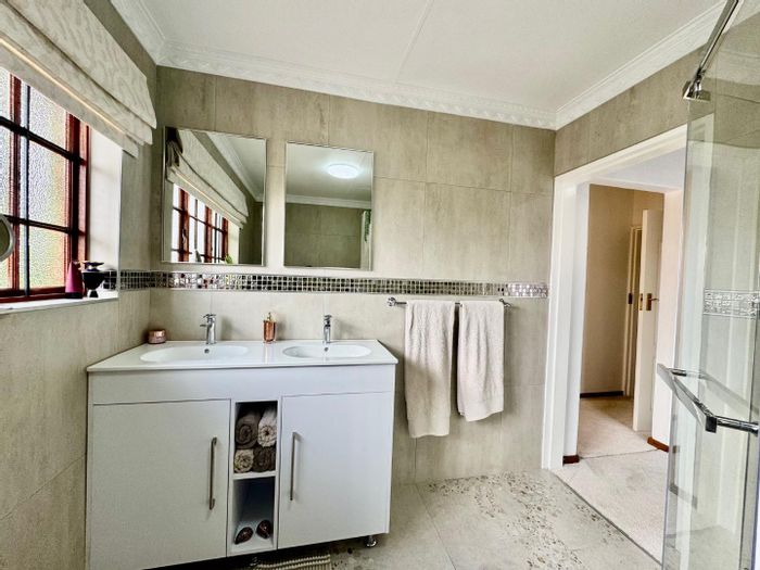 Family-focused home within walking distance of Tom Newby and Brandwag Schools, featuring four en‑suite bedrooms, a sunny farm‑style kitchen, five-car automated garage and separate grooming/workshop plus solar.