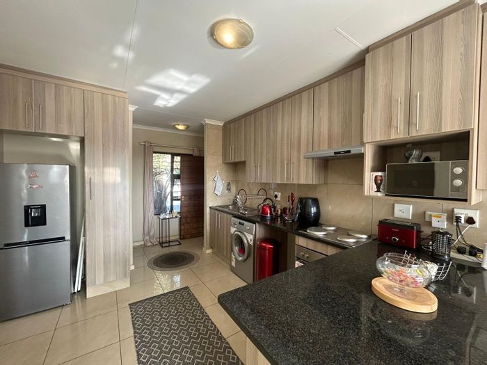 Secure country-estate living in Rynfield, Benoni with quick access to schools and shopping, green communal spaces and a contemporary quartz kitchen — three bedrooms, two bathrooms, double garage.
