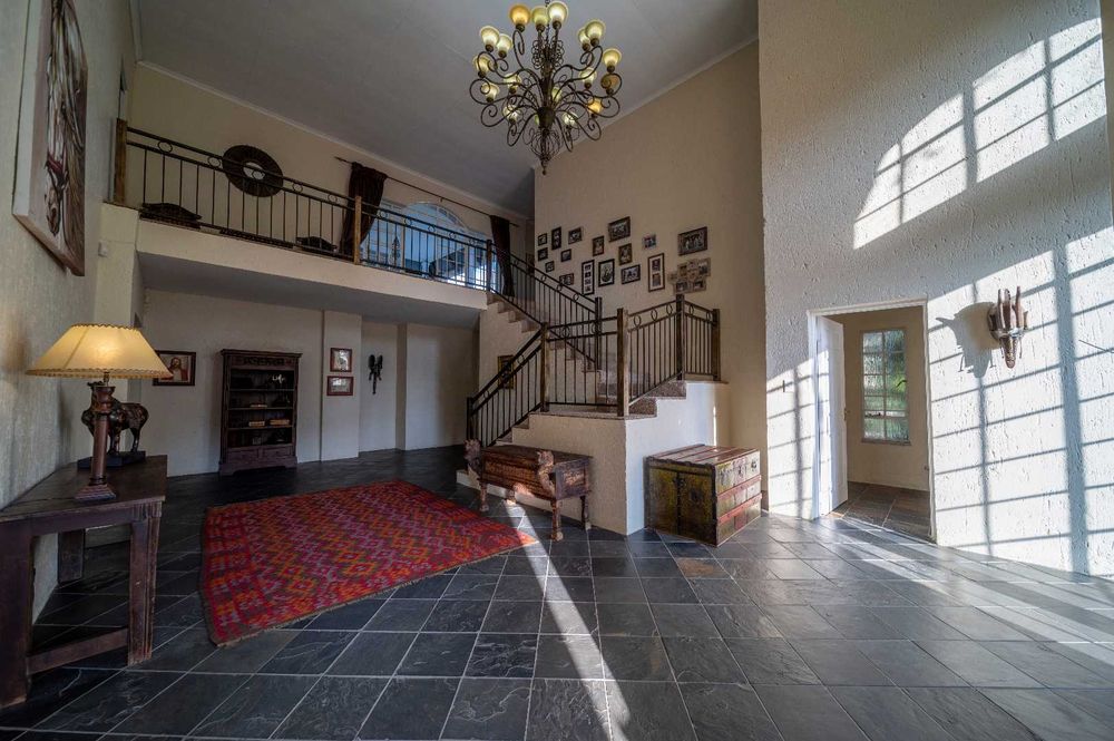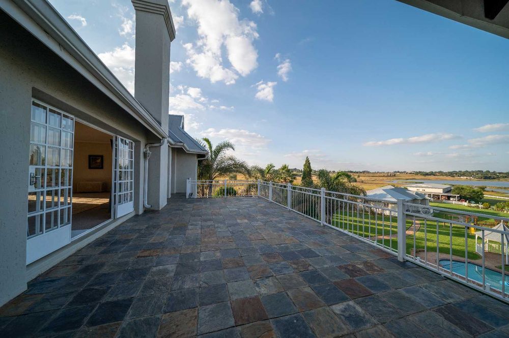 From the moment you enter the gate, you realise you have arrived at some place extraordinary that showcases exceptional quality. This large "Benoni Farmhouse", was created to combine relaxed living and easy entertaining - embellished by an abundance of natural light accentuated by luxurious textures and finished throughout. This home has beautifully proportioned reception rooms, double volume entrance hall, dining room, open plan eat in kitchen to TV room. Dining room open plan to separate double volume lounge overlooking the established garden, pool and water. Comfortable family living with 6 bedrooms, 4.5 bathrooms with 3 bedrooms being with en-suite bathrooms. Master bedroom is of monstrous proportions with en suite bathroom with spa-bath and separate shower. The Master suite opens onto a large balcony overlooking the spectacular garden and sand pan. The large entertainment veranda overlooks a large private landscaped garden, sparkling pool and the dam.