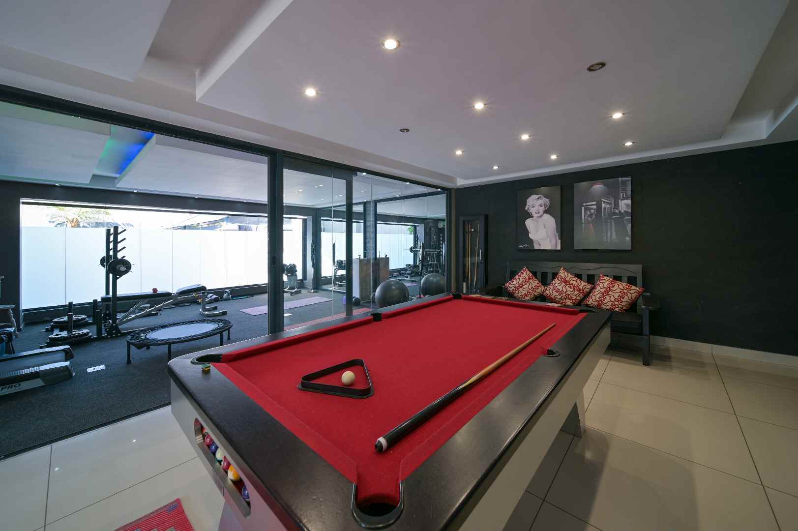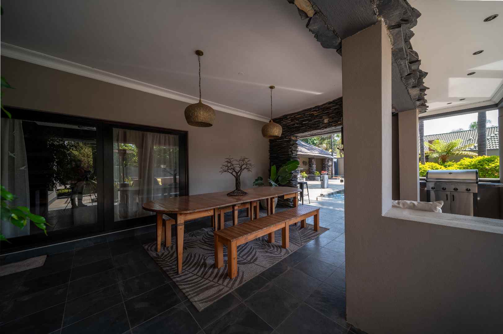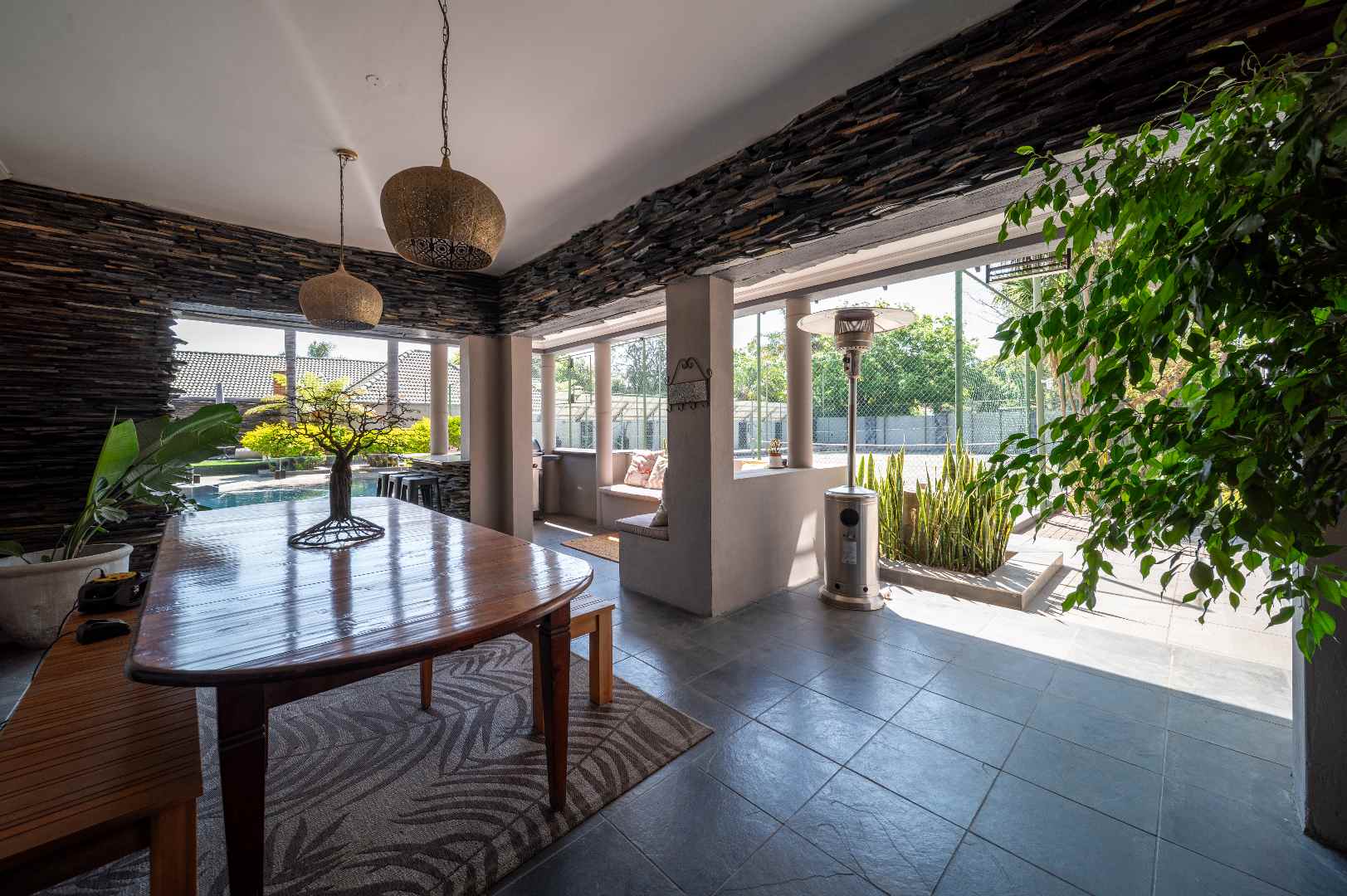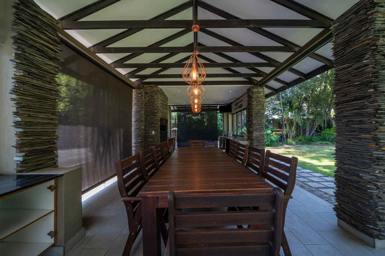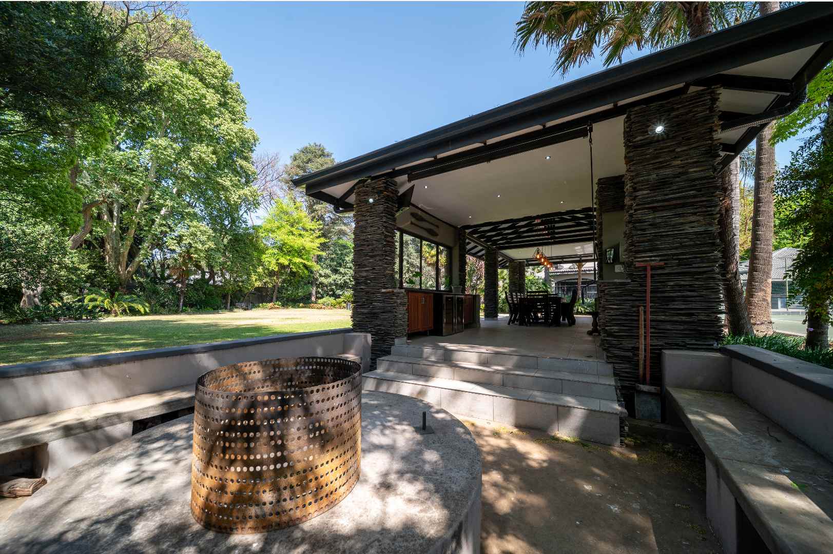 Large separate entertainment pavilion overlooking the lush, landscaped garden – complete with a braai, basin, and connecting boma.