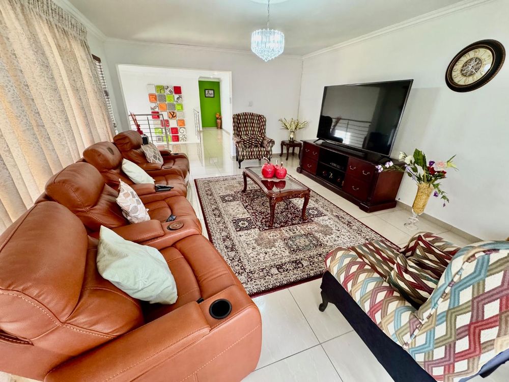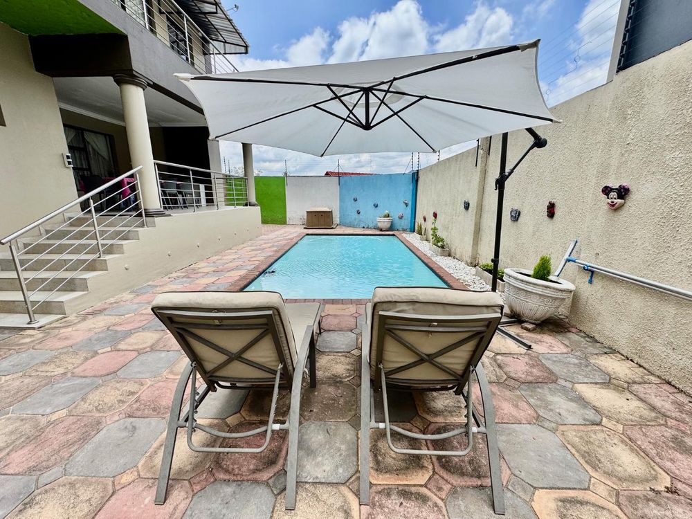 The open plan living and dining areas flow seamlessly to a covered patio with built in braai - overlooking a private garden and sparkling pool. The perfect setting for relaxed outdoor living and entertaining friends and family.