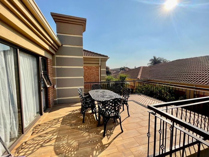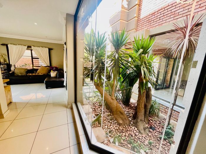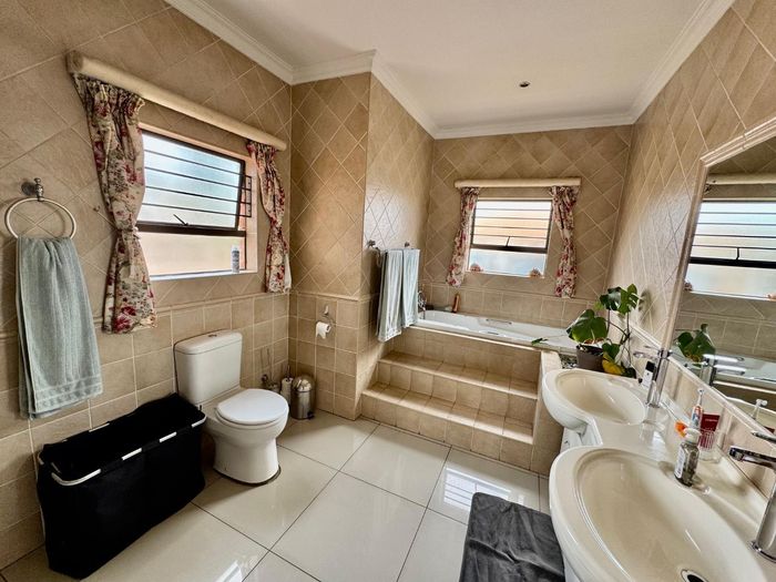 Family-friendly Rynfield living with poolside entertaining, thatched lapa and income-generating garden cottage (R9,000/month). Renovated home with loft, 3 beds and 3 garages.