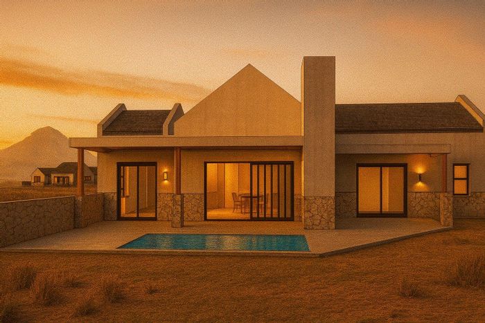 Escape to secure Clarens Mountain Estate living with panoramic mountain views, hiking trails and approved build plans; optional private pool provision and three-bed, three-bath homes with double carport.