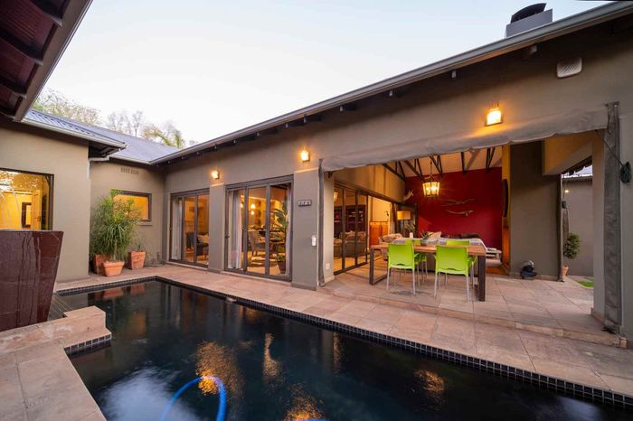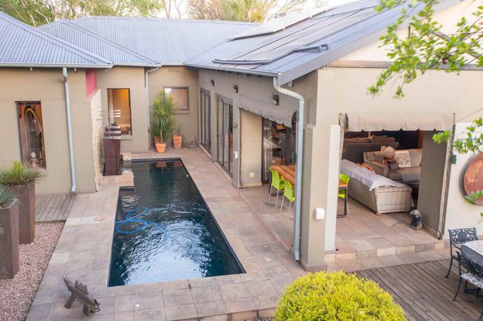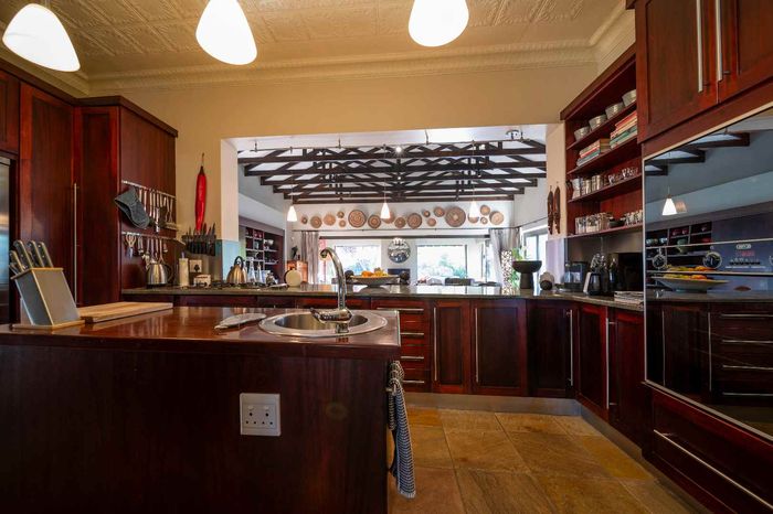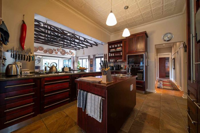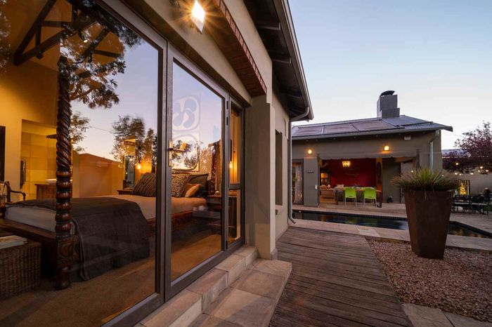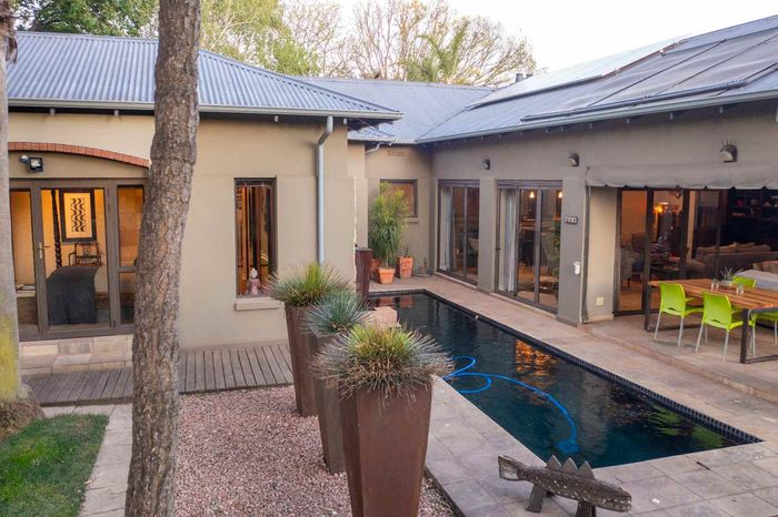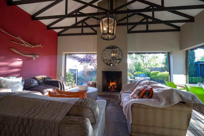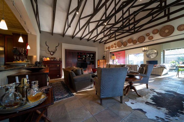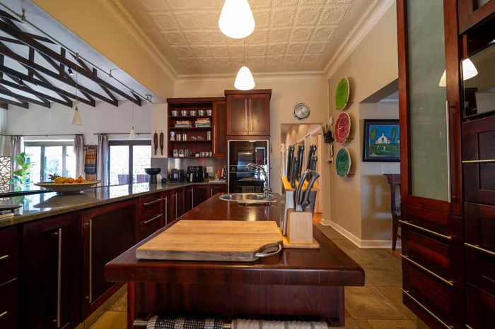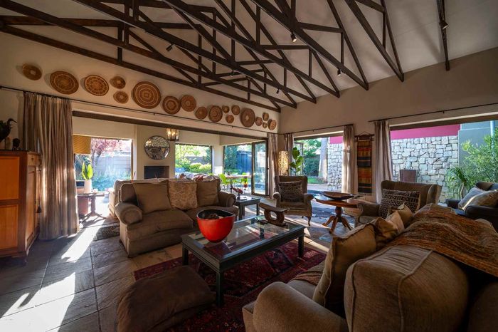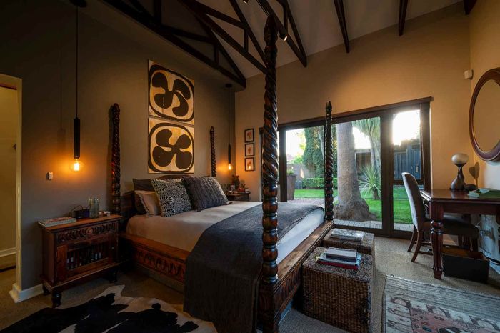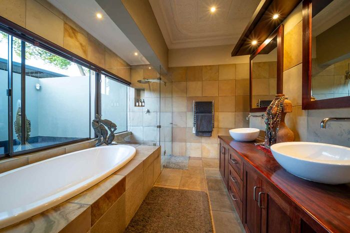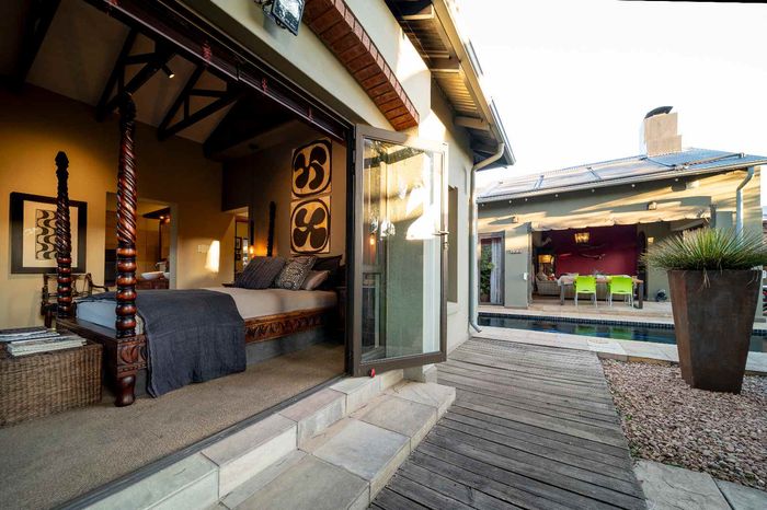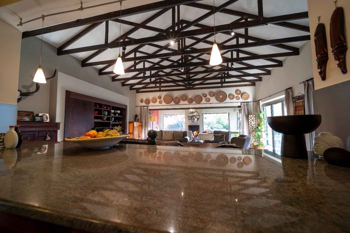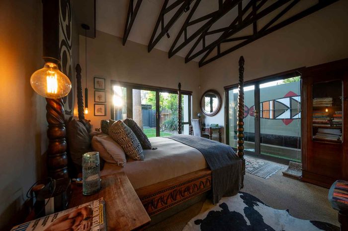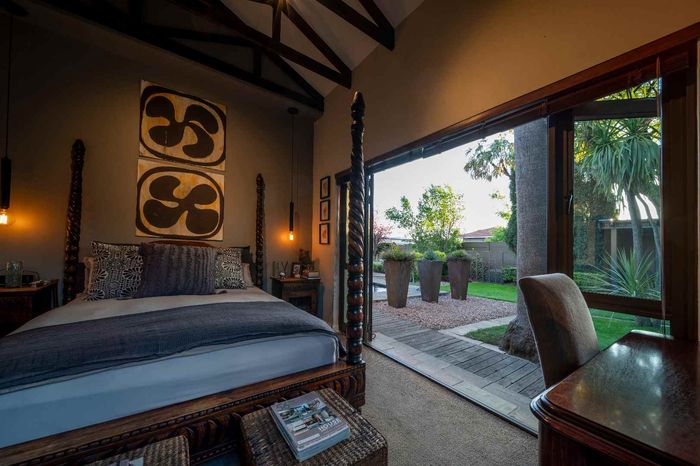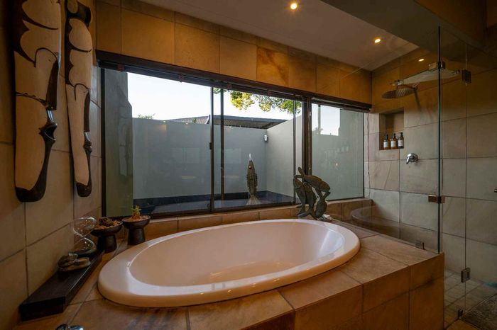 Unique Bali-African inspired home with spacious bedrooms, open-plan living, workshop, solar power, and automated systems. Ideal for entertaining.