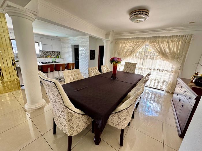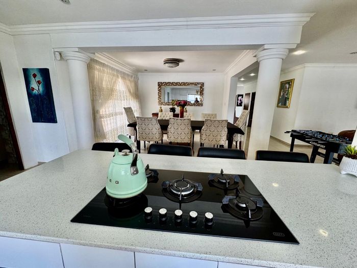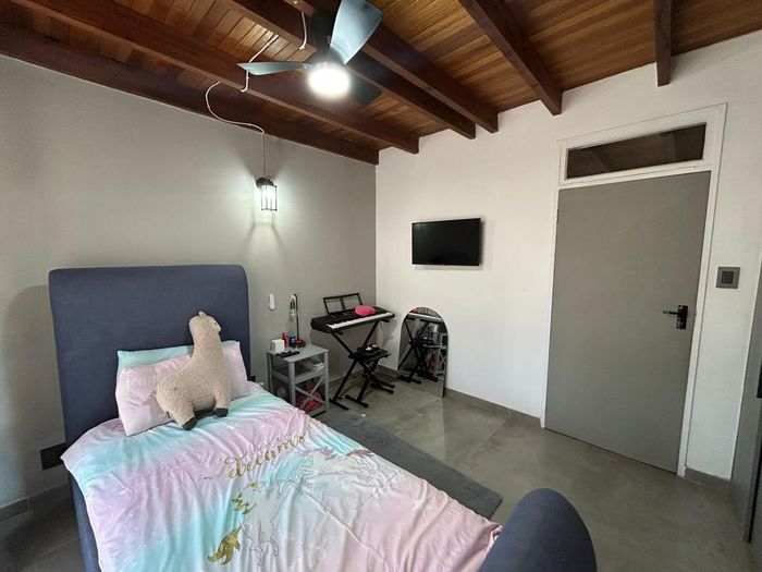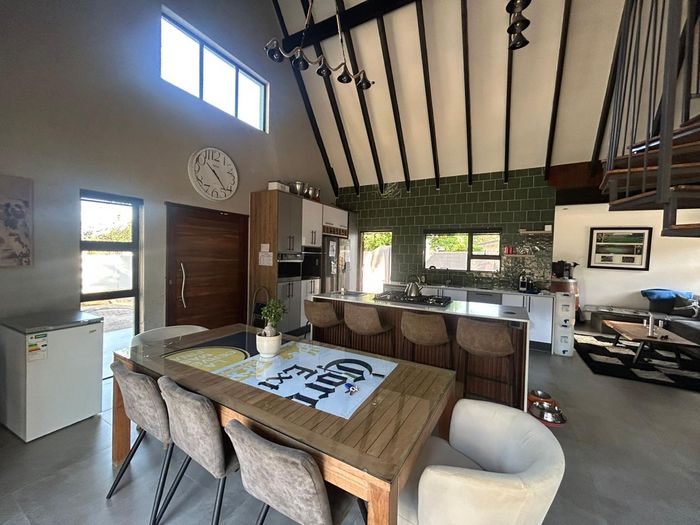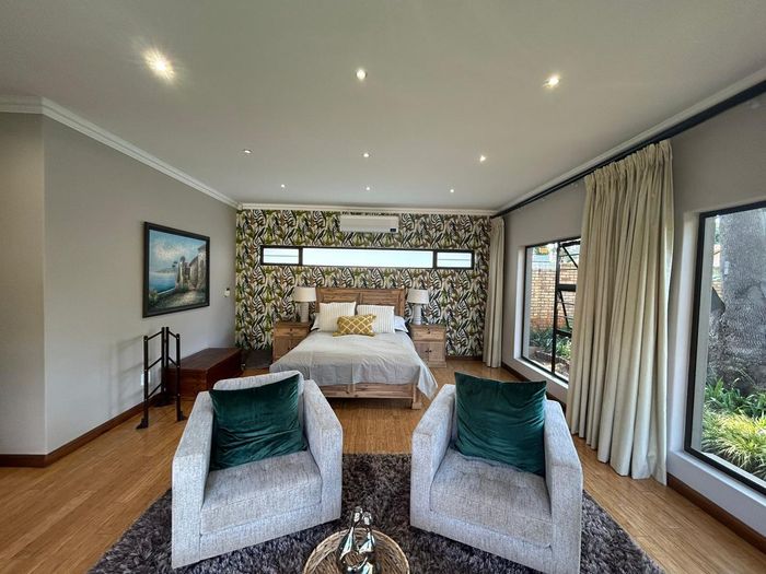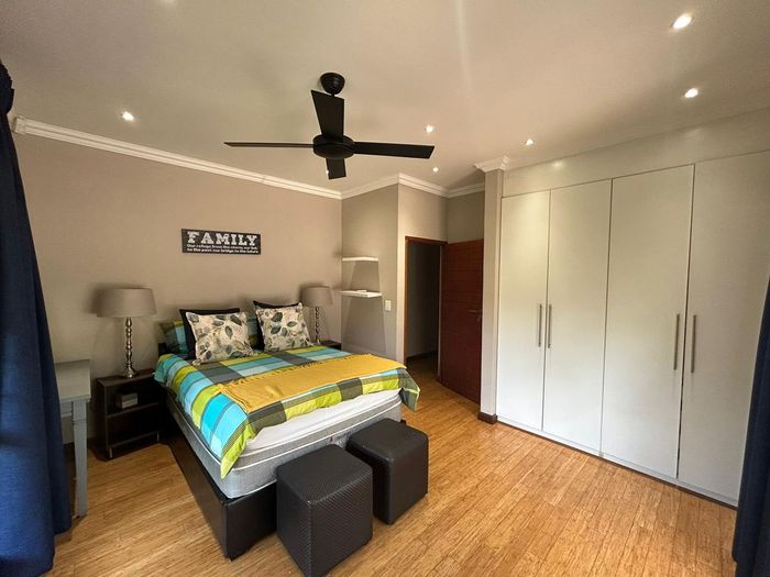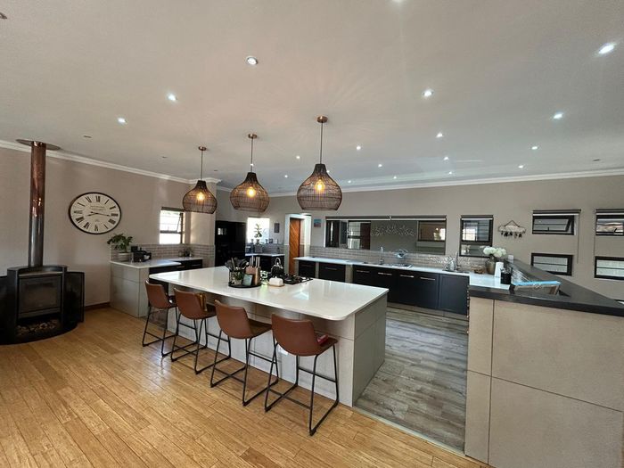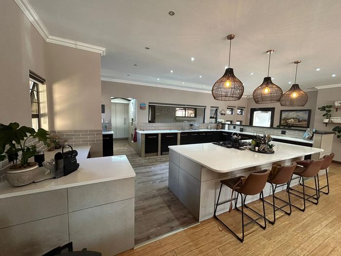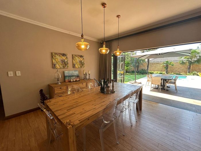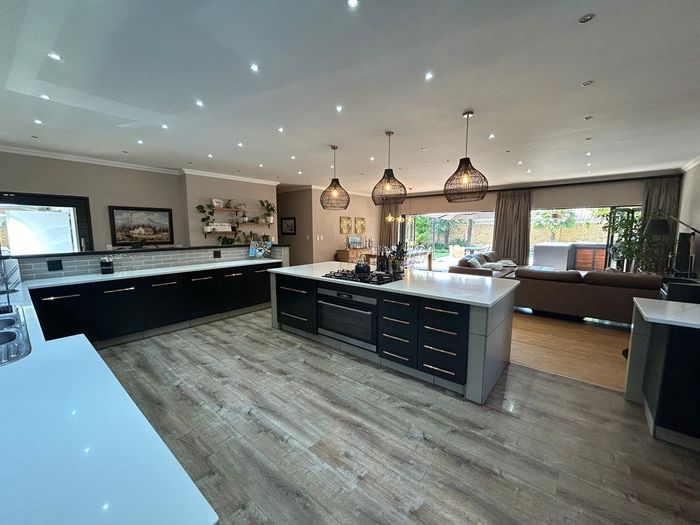 Effortless family living in Rynfield, minutes from Ebotse Golf Course, airport and schools — open-plan kitchen, covered patio with built-in braai, private garden and pool; five bedrooms, double garage.