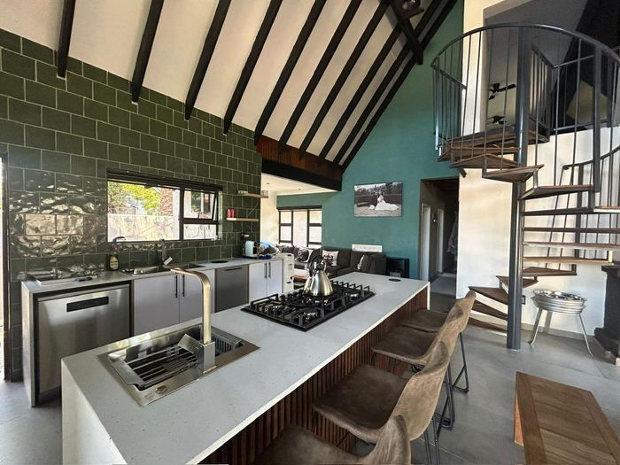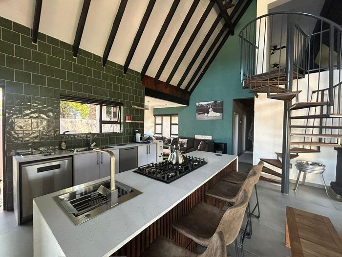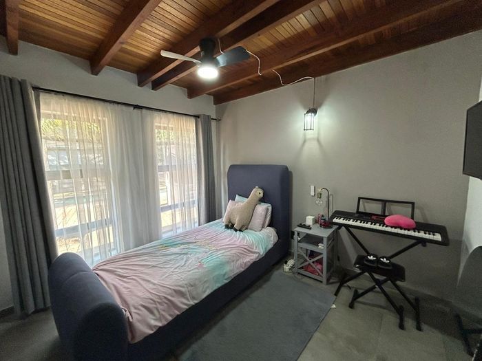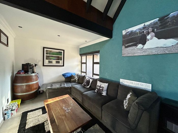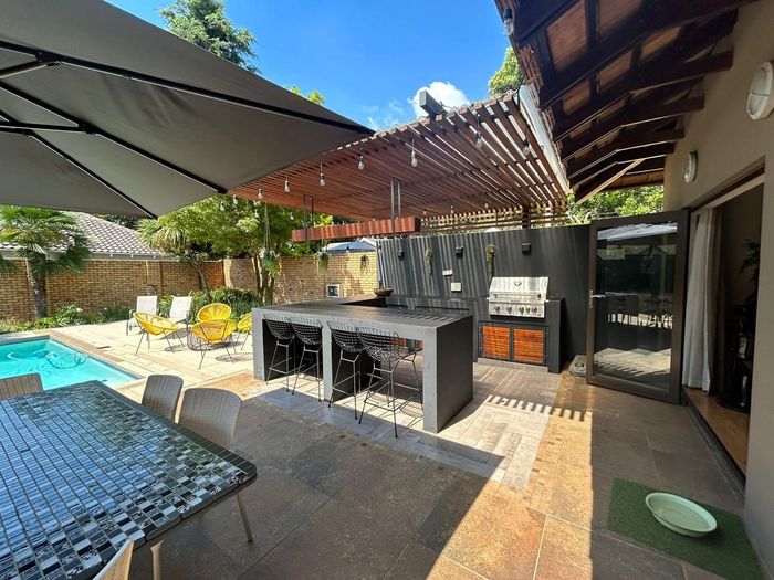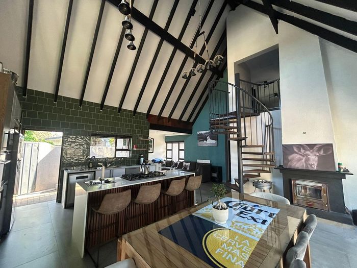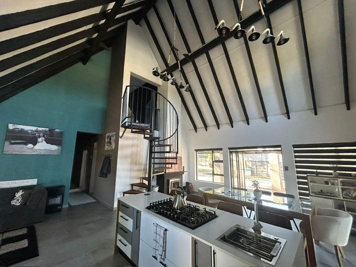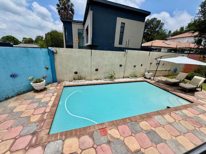 Family-friendly Rynfield living with poolside entertaining, thatched lapa and income-generating garden cottage (R9,000/month). Renovated home with loft, 3 beds and 3 garages.