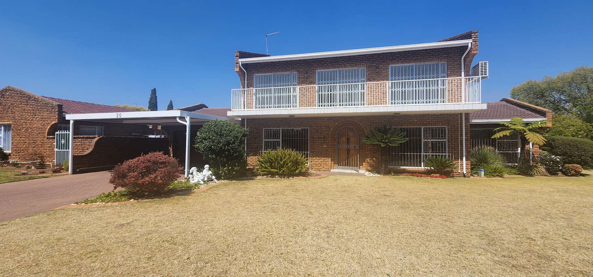 Upstairs, the home features three spacious, sunlit bedrooms, each with sliding doors that open onto private balconies. The main bedroom is a luxurious retreat, boasting an en-suite bathroom, air conditioning, and ample built-in cupboards. All bedrooms are carpeted, offering a cozy and comfortable atmosphere.