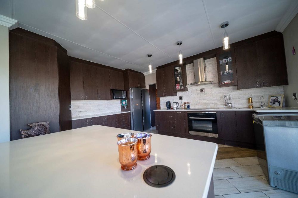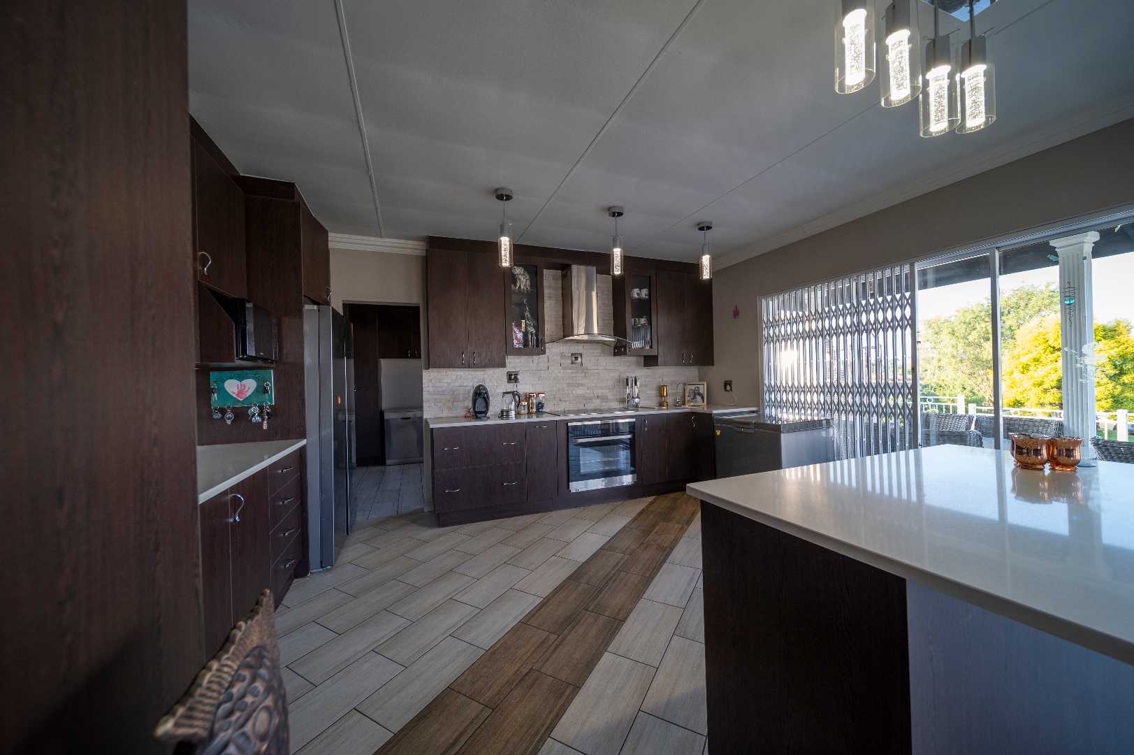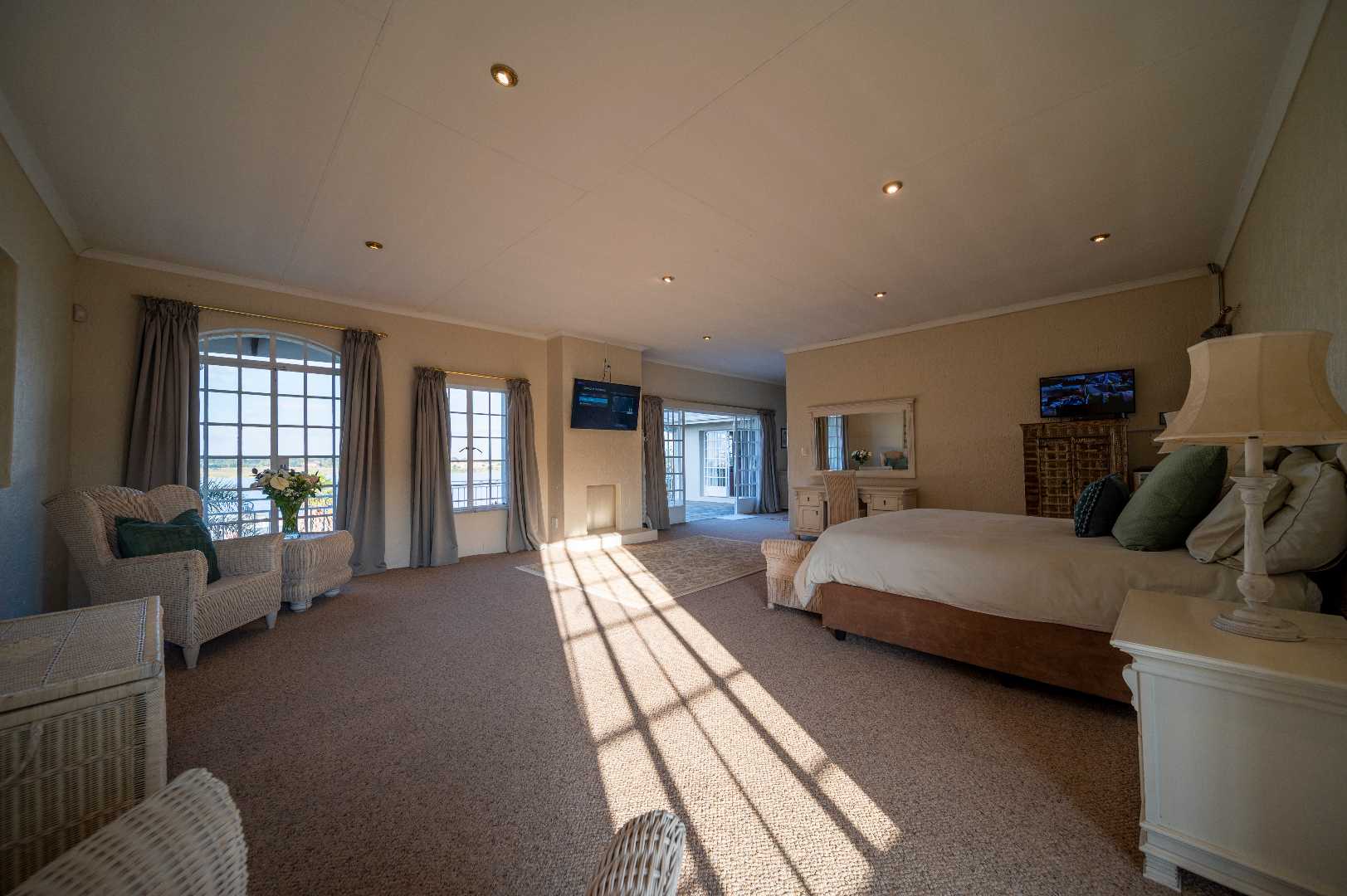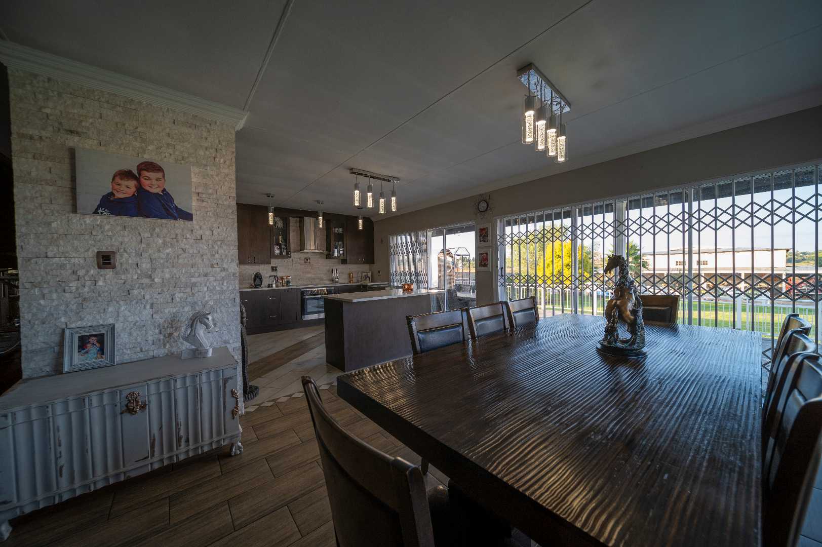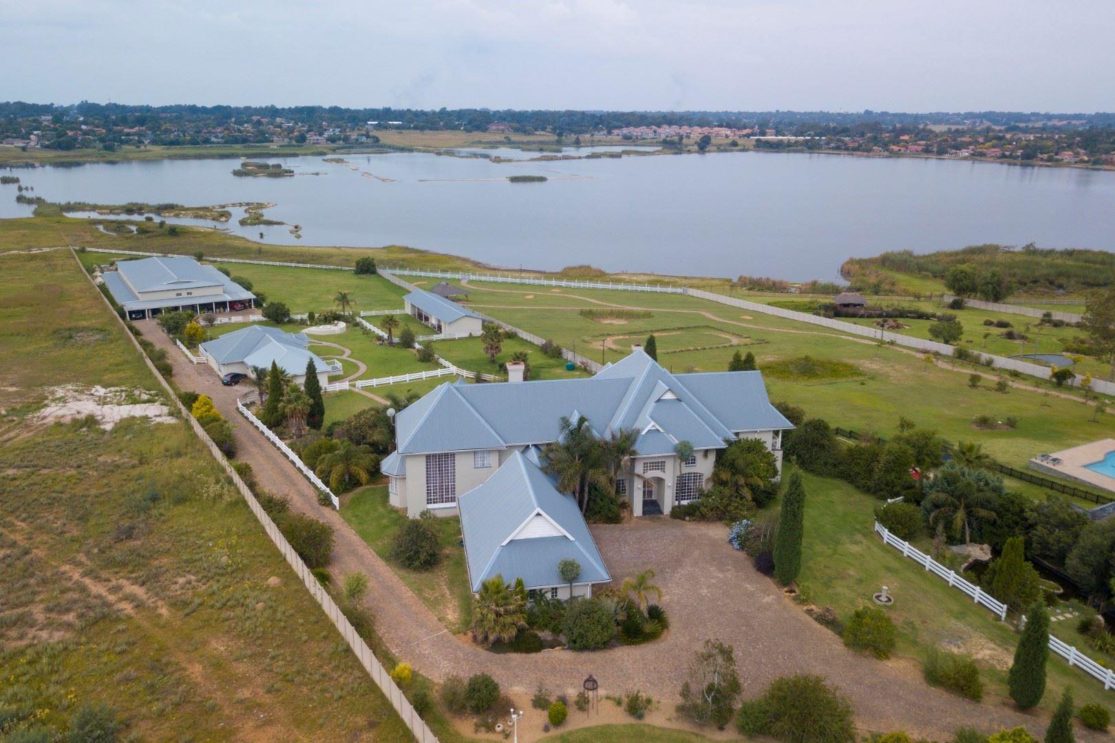 From the moment you enter the gate, you realise you have arrived at some place extraordinary that showcases exceptional quality. This large "Benoni Farmhouse", was created to combine relaxed living and easy entertaining - embellished by an abundance of natural light accentuated by luxurious textures and finished throughout. This home has beautifully proportioned reception rooms, double volume entrance hall, dining room, open plan eat in kitchen to TV room. Dining room open plan to separate double volume lounge overlooking the established garden, pool and water. Comfortable family living with 6 bedrooms, 4.5 bathrooms with 3 bedrooms being with en-suite bathrooms. Master bedroom is of monstrous proportions with en suite bathroom with spa-bath and separate shower. The Master suite opens onto a large balcony overlooking the spectacular garden and sand pan. The large entertainment veranda overlooks a large private landscaped garden, sparkling pool and the dam.