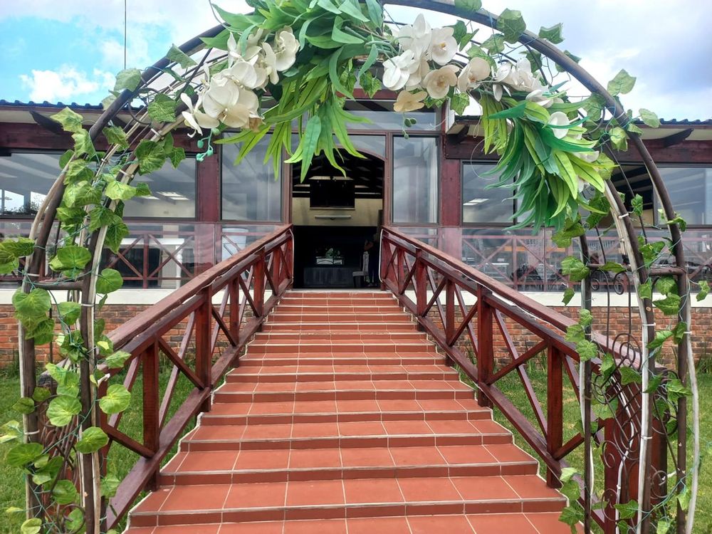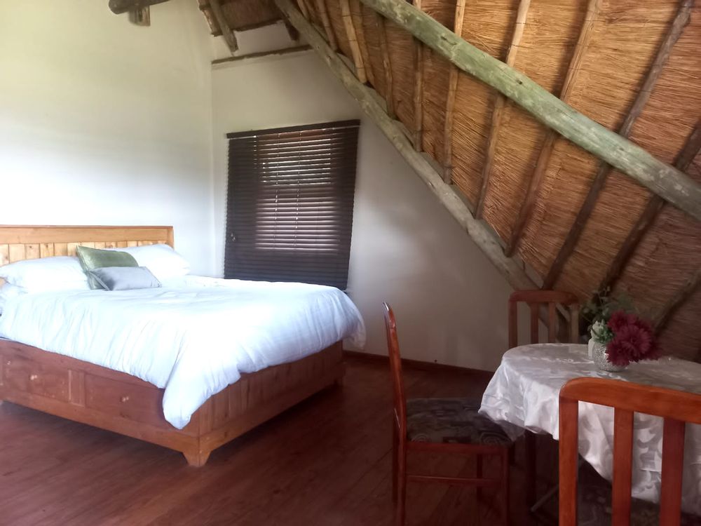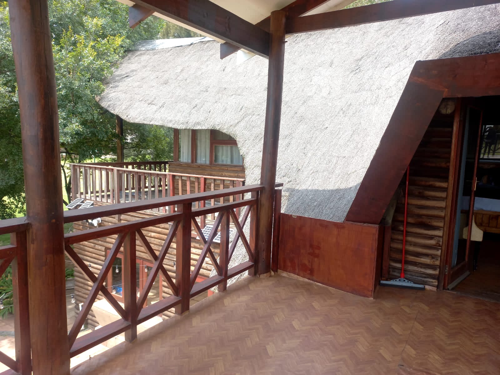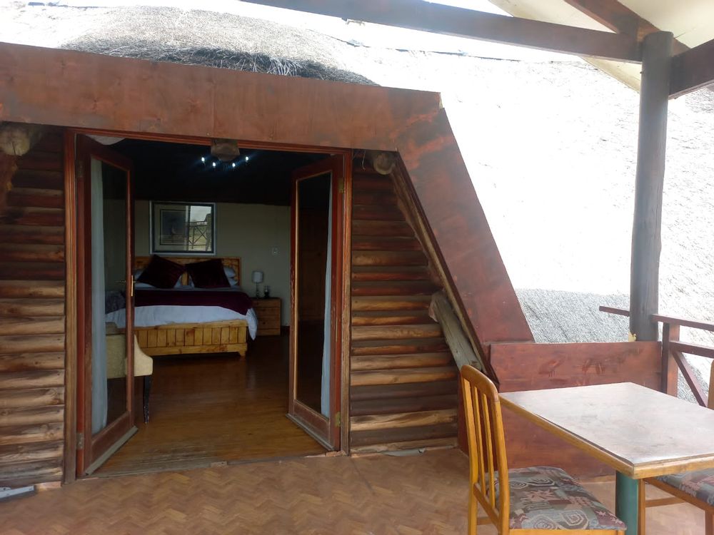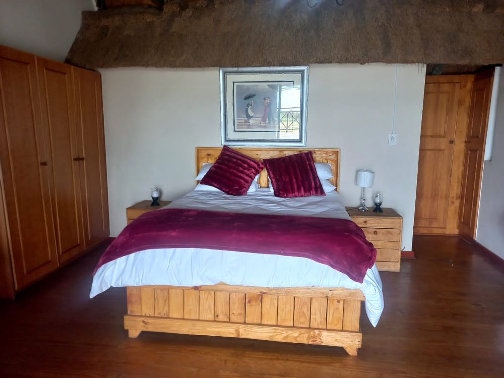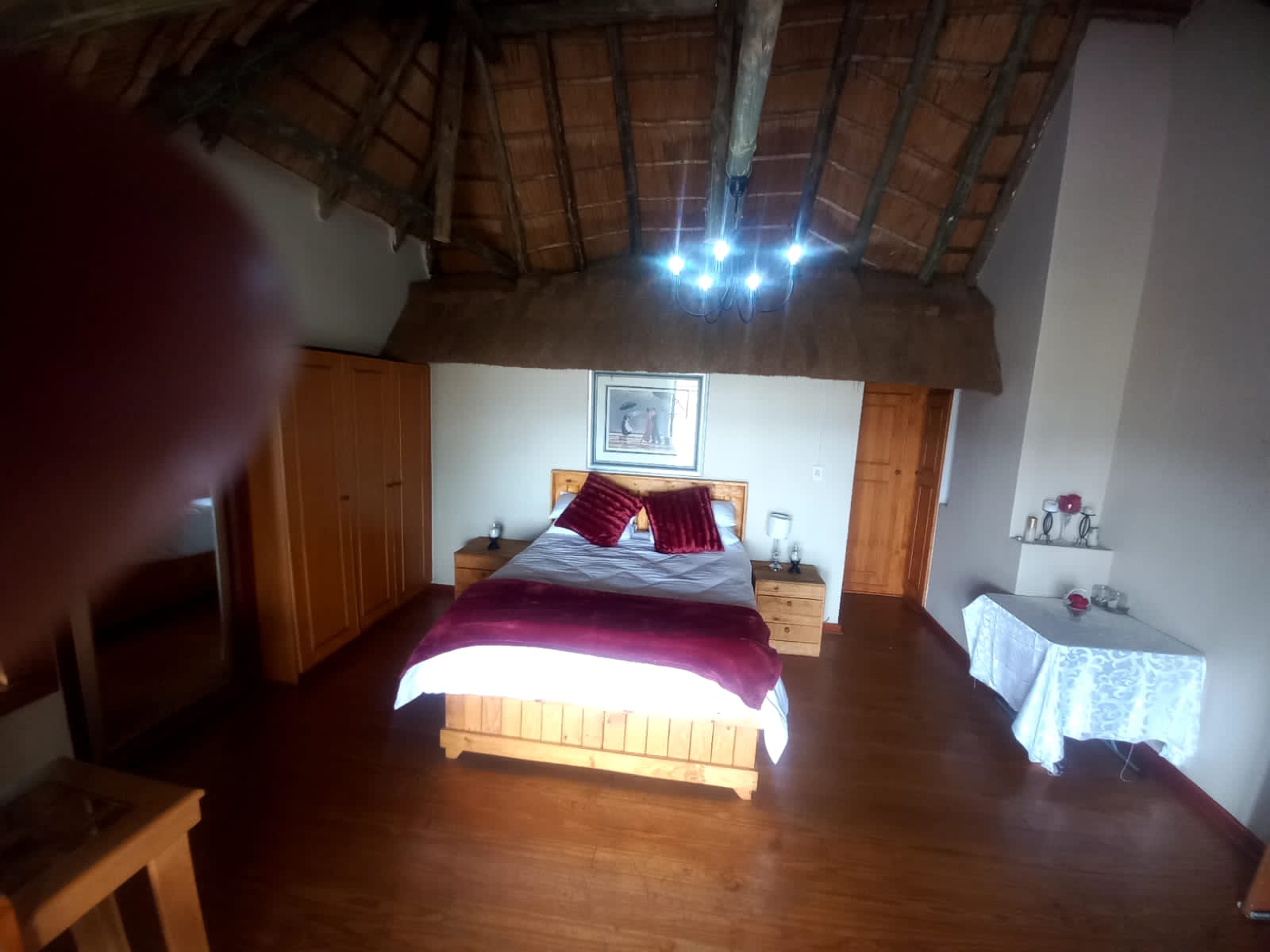 A stunning thatched function hall with a rustic ambience. It has lots of doors and windows opening up to allow light and fresh air into the room.