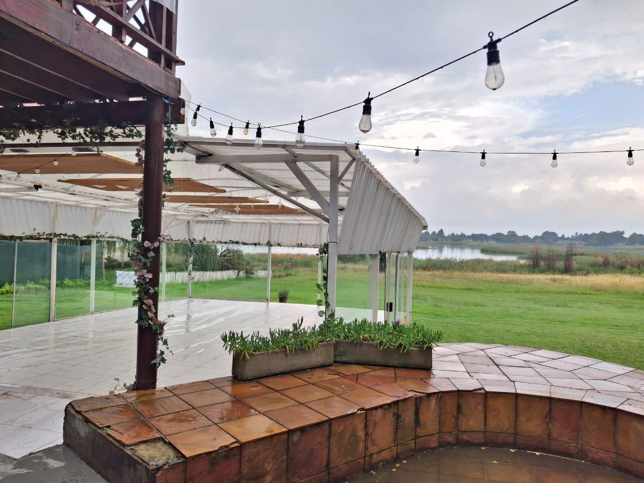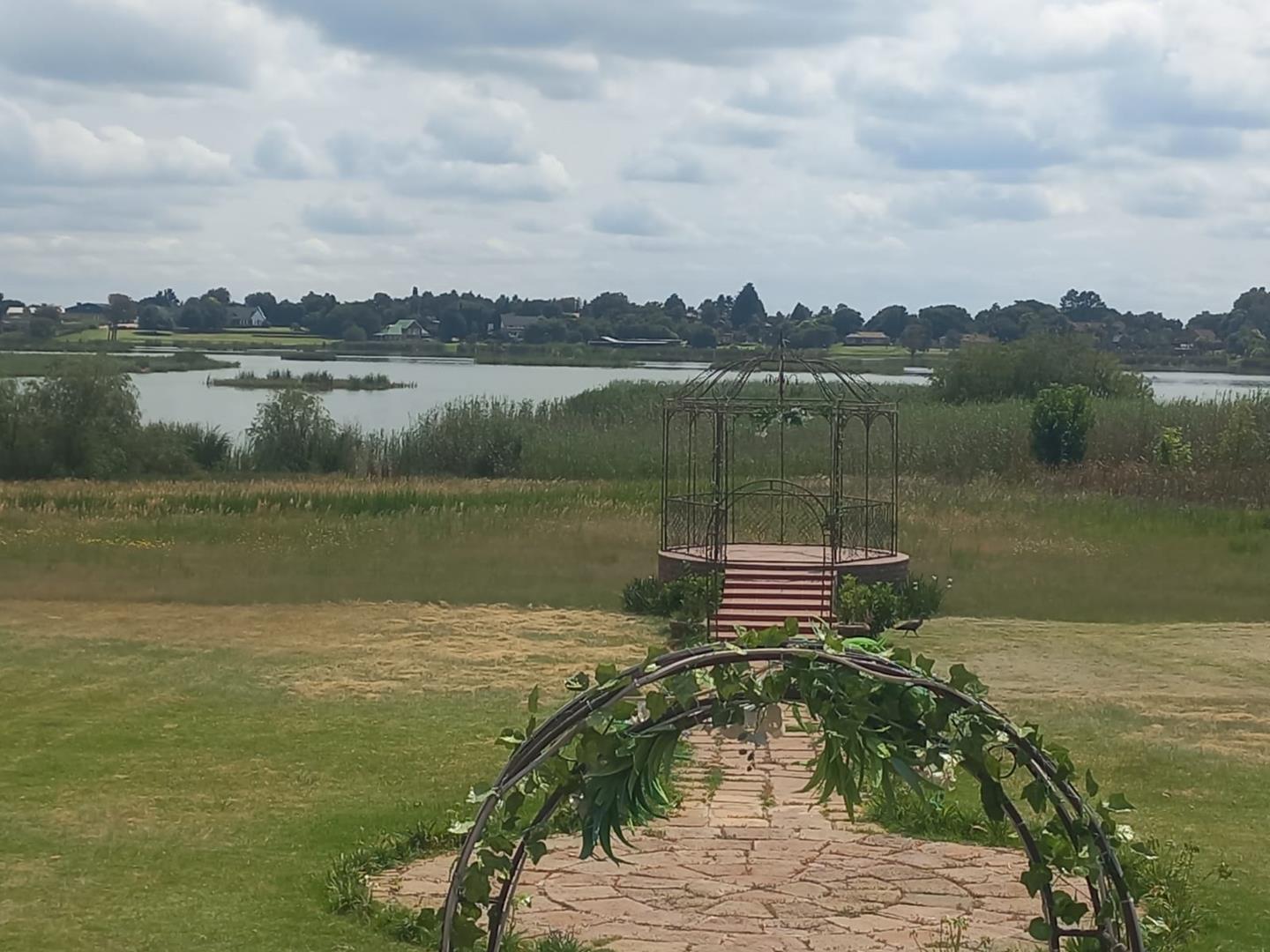 Tranquil gardens from the hall, right down to the banks of the dam, with an outdoor area for bride and groom to take their vows.