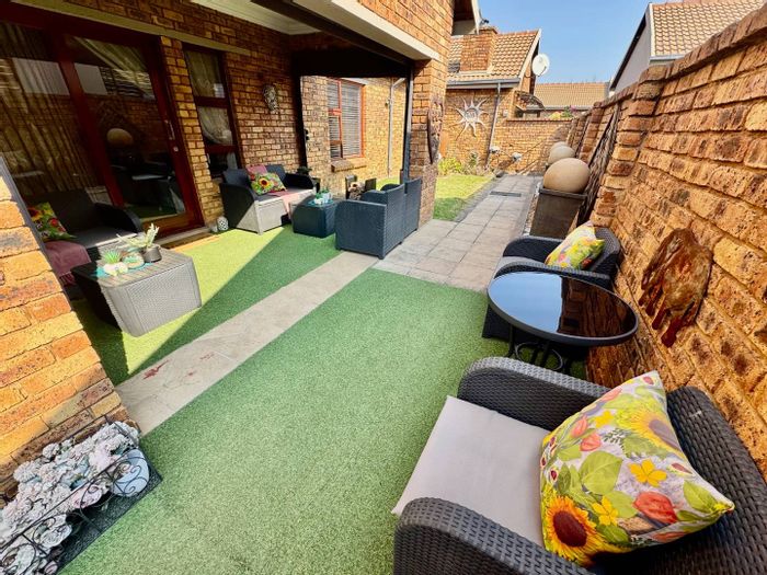 3 bedrooms, 2 bathrooms, 2 garages, 157 m² townhouse in secure complex with private garden and communal pool.